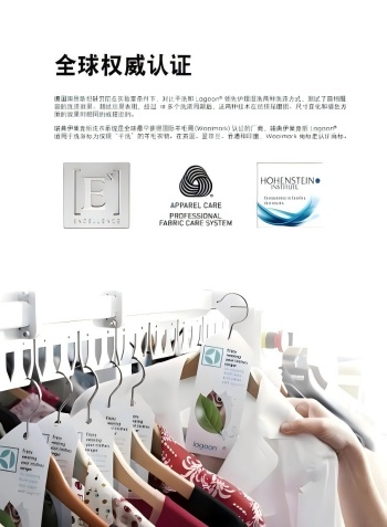 lagoon®温和的机械力,可以洗涤精致的纺织面料和标有只能干洗标签的羊毛类衣物,是国际羊毛局Woolmark 认证的湿洗方案。